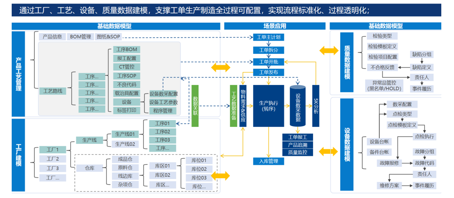 主要功能包括生产过程全履历追溯,5Key数据采集,PM、参数管控,IPQC、OQC检验,黑名单管控, DataAudit管控等。