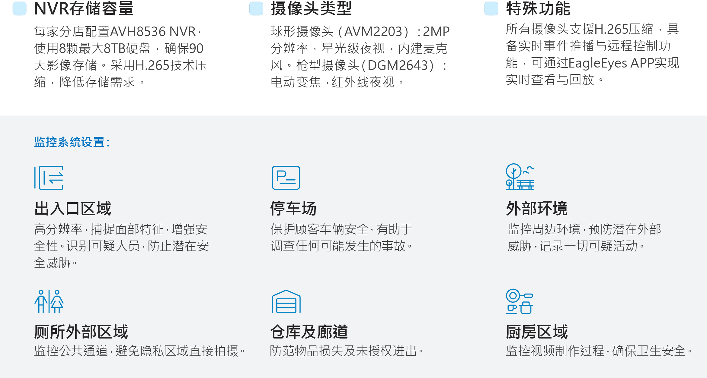 云智汇智能监控,旨在为连锁餐饮品牌构建一套完整的智能监控体系,整合店端、总部与云端三大层级,实现全方位、智能化的安防管理。系统以高效、安全、稳定为核心,采用AI智能摄像头与中央管理平台(CMS),支持门店端实时监控、云端数据备份、总部集中管控等核心功能。通过智能分析与人机协同,提升安防响应效率,降低运营风险,助力连锁品牌实现统一、可视、可追溯的智能化管理。